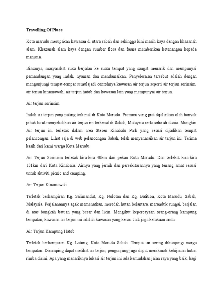 Contoh Karangan Bahasa Inggris Tempat Menarik Di Malaysia